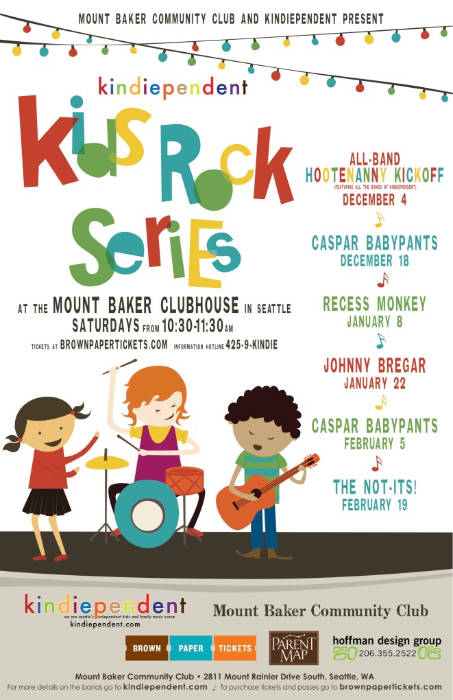 I’m playing a kid show with Johnny Bregar and friends at the Mount Baker Community Club Saturday, January 22. The show starts at 10:30 a.m. and is in Seattle somewhat near Seward Park. Visit their site for directions (2811 Mount Rainier Drive South).