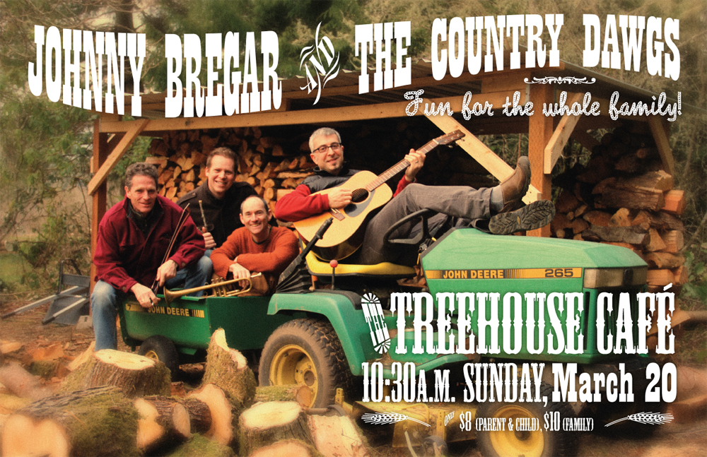 I am super excited to announce that I’m playing with Johnny Bregar and the Country Dawgs at the Treehouse Café on Bainbridge Island on Sunday, March 20 at 10:30 a.m. I’ve yet to play this hot new venue on the island. It’s just a short walk from my house AND the show will be over by nap time. What could be better? If you’ve got kids and live on Bainbridge, I expect to see you there!